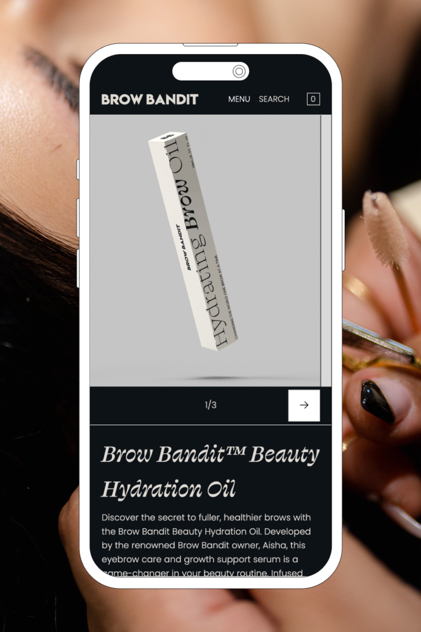We combined Aisha’s preference for minimalism with her desire to stand out from the crowd in a stunning black backdrop across the site – unusual for ecom – and a neutral yet bold palette celebrating the diversity of her many melinated clients and Brow Bandit’s Brown-owned business identity.