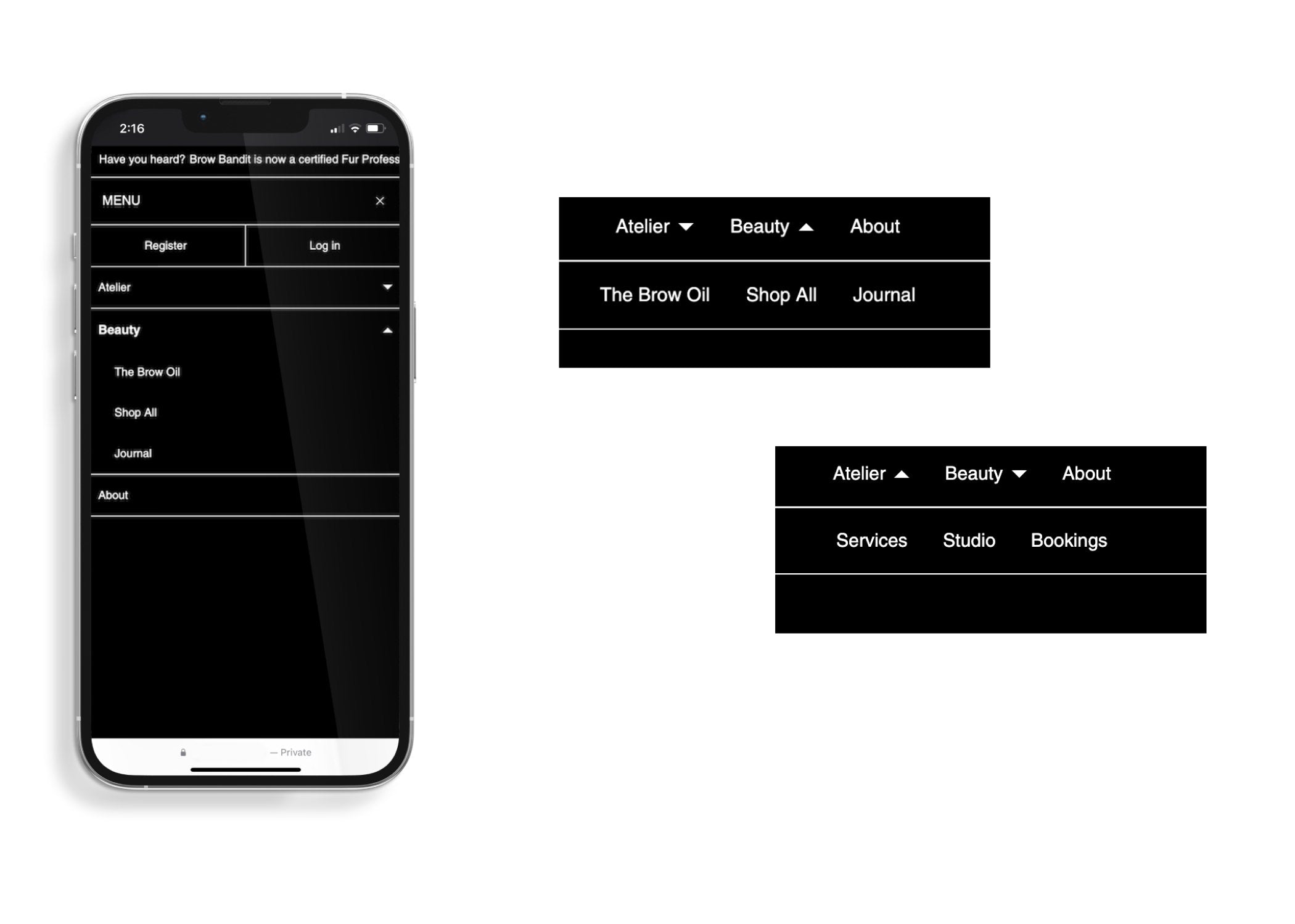 Alcove Studio came on board with the task of refreshing Brow Bandit’s brand identity and apply the new look across a new product packaging design, a migration to Shopify for e-commerce and her physical studio offerings, and on Instagram.